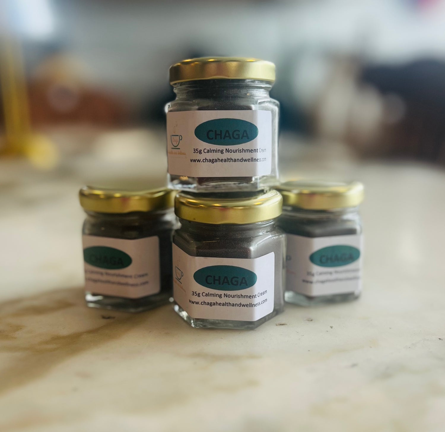 35 grams of all natural Chaga Cream. It contains shea butter, coconut oil, beeswax, chaga powder, lavender oil, chamomile extract. A little bit goes a long way!