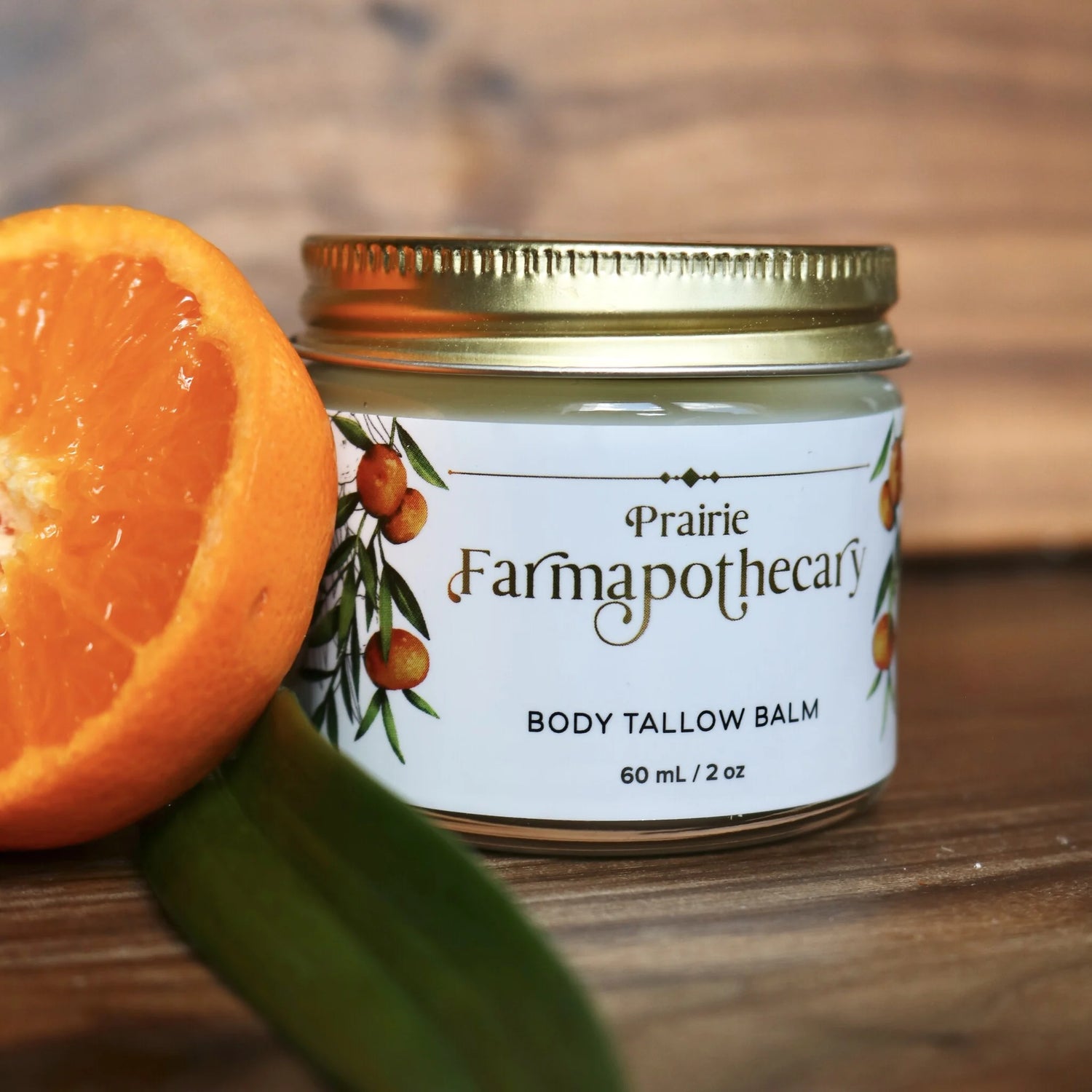 ABOUT TALLOW: Uniquely compatible to our own skin's biology, tallow is comprised of 50% saturated fat. Our skin's cell membranes are also composed of 50% saturated fat, which makes tallow a nourishing food for our skin. Grass-fed tallow is also loaded with vitamins A, D, E, and K. Prairie Farmapothecary tallow is sourced from small, independent and regenerative farms and beef processors in our local area.
